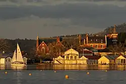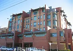 Ballarat is a primarily low-rise city. The City of Ballarat defines two Major Activity Centres within the urban area – the Central Business District (CBD) and Wendouree with a high concentration of business, retail and community function based primarily on the Melbourne 2030 planning model and a further 11 neighbourhood activity centres.[62] The tallest buildings in urban Ballarat are all seven-storeys. This includes Lyons Place, a seven-storey hi-rise residential tower (2025), the seven-storey Henry Bolte wing of the Ballarat Base Hospital (1994) and the Ballarat Base Hospital redevelopment under construction (estimated completion 2027). Other tall office buildings include the five-storey GovHub (2021), Ballarat Regional Integrated Cancer Centre (2013), MLC building (1957) and Ballarat State Offices (1941). Beyond the central area, urban Ballarat extends into several suburban areas with a mixture of housing styles. Predominant styles are 19th-century villas, Victorian terraces,[63] Federation homes and Georgian red brick homes. Settlement patterns around Ballarat consist of small villages and country towns, some with less than a few thousand people.