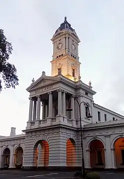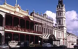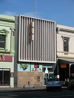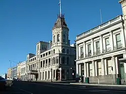 Restoration of historic buildings is encouraged including a low interest council Heritage Loans Scheme.[72] and the prevention of demolition by neglect discouraged by council policies.[73] Since the 1970s,[74] the local council has become increasingly aware of the economic and social value of heritage preservation.[75] This is in stark contrast to the 1950s and 60s when Ballarat followed Melbourne in encouraging the removal of Victorian buildings, verandahs in particular. Recent restoration projects funded by the Ballarat include the reconstruction of significant cast iron lace verandahs including the Mining Exchange, Art Gallery (2007), Mechanics institute (2005–)[76] on Lydiard Street and in 2010 the restoration of the Town Hall and the long neglected Unicorn Hotel façade on Sturt Street.[77]