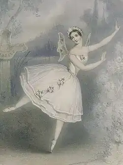Romantic ballet was an artistic movement of classical ballet and several productions remain in the classical repertoire today. The Romantic era was marked by the emergence of pointe work, the dominance of female dancers, and longer, flowy tutus that attempt to exemplify softness and a delicate aura.[5] This movement occurred during the early to mid-nineteenth century (the Romantic era) and featured themes that emphasized intense emotion as a source of aesthetic experience. The plots of many romantic ballets revolved around spirit women (sylphs, wilis, and ghosts) who enslaved the hearts and senses of mortal men. The 1827 ballet La Sylphide is widely considered to be the first, and the 1870 ballet Coppélia is considered to be the last.[4] Famous ballet dancers of the Romantic era include Marie Taglioni, Fanny Elssler, and Jules Perrot. Jules Perrot is also known for his choreography, especially that of Giselle, often considered to be the most widely celebrated romantic ballet.[5]