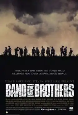 Band of Brothers is a 2001 American[2] war drama miniseries based on historian Stephen E. Ambrose's 1992 non-fiction book of the same name.[3] It was created by Steven Spielberg and Tom Hanks, who also served as executive producers, and who had collaborated on the 1998 World War II film Saving Private Ryan, from which the series got many of its visual cues and crew members.[4] Episodes first aired on HBO from September 9 to November 4, 2001.