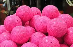 Since association football was already popular in England, the codified bandy rules took after much of the football rules. Like association football, games are normally two 45 minute halves and there are 11 players per side. Players sticks are curved like large field hockey sticks and the bandy ball is roughly the size of a tennis ball with a cork core and hard plastic coating. Bandy balls were originally usually red but are now either orange or more commonly cerise.