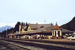 The railway came to Banff when the Canadian Pacific Railway (CPR) line from Calgary opened in 1883.[39] The current station building was opened by the CPR in 1910,[40] and was declared a heritage railway station by the Canadian federal government in 1991.[41]