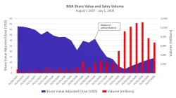 On September 14, 2008, Bank of America announced its intention to purchase Merrill Lynch & Co., Inc. in an all-stock deal worth approximately $50 billion. Merrill Lynch was at the time within days of collapse, and the acquisition effectively saved Merrill from bankruptcy.[57] Around the same time Bank of America was reportedly also in talks to purchase Lehman Brothers, however a lack of government guarantees caused the bank to abandon talks with Lehman.[58] Lehman Brothers filed for bankruptcy the same day Bank of America announced its plans to acquire Merrill Lynch.[59] This acquisition made Bank of America the largest financial services company in the world.[60] Temasek Holdings, the largest shareholder of Merrill Lynch & Co., Inc., briefly became one of the largest shareholders of Bank of America, with a 3% stake.[61] However, taking a loss Reuters estimated at $3 billion, the Singapore sovereign wealth fund sold its whole stake in Bank of America in the first quarter of 2009.[62]