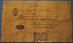 - ^ "A brief history of banknotes". Bank of England website. Archived from the original on 4 February 2012. Retrieved 31 October 2011.; "Fox, Fowler & Co. £5 note". British Museum. Archived from the original on 2 October 2011. Retrieved 31 October 2011.