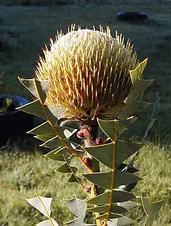B. baxteri (Birds Nest Banksia), a species used in the cut flower trade, cultivated near Colac, Victoria