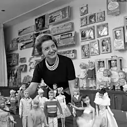 Upon her return to the United States, Handler redesigned the doll (with help from local inventor-designer Jack Ryan) and the doll was given a new name, Barbie, after her daughter Barbara (born May 21, 1941).[8] Barbara Handler "hated being known as the inspiration for the Barbie doll."[9] The doll made its debut at the American International Toy Fair in New York City on March 9, 1959.[10] This date is also used as Barbie's official birthday.