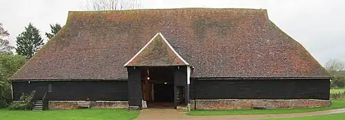 The Old English word for barley was bere.[4] This survives in the north of Scotland as bere; it is used for a strain of six-row barley grown there.[5] Modern English barley derives from the Old English adjective bærlic, meaning "of barley".[3][6] The word barn derives from Old English bere-aern meaning "barley-store".[3] The name of the genus is from Latin hordeum, barley, likely related to Latin horrere, to bristle.[7]