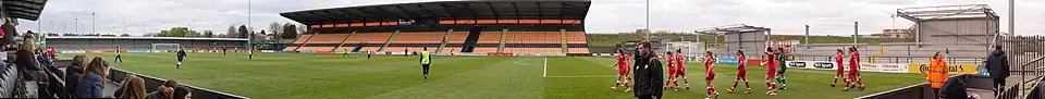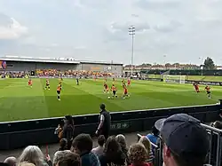 The 2020–21 season saw Barnet record their lowest league position for many years. They finished within the relegation zone of the National League, but were saved from dropping into the National League South due to the abandonment of the 2020–21 National League North and South mid-season (owing to the COVID-19 pandemic). The team's 2020–21 performance was greatly hampered by the club being badly affected by the pandemic during the first half of the season, and the closure of the club's EFL-funded football academy at the end of the previous season.[28] In the 2022–23 season, they lost to Boreham Wood in the play-off quarter-finals after finishing 5th.[29] The following season Barnet finished in second place to qualify for the play-offs again. In the semi-finals, they were defeated 4–0 by Solihull Moors at home.[30]