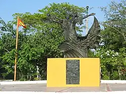 Barranquilla is also known as La Arenosa (meaning The Sandy), so named by the president of New Granada, Tomás Cipriano de Mosquera, during his stay in Barranquilla in 1849.[16] Curramba, la Bella was also used to refer to Barranquilla by journalist Juan Eugenio Cañavera in Bogotá in the mid-twentieth century.[17] The "la Bella" part was assigned by fellow journalist Roger Araújo as a counterweight to the word Curramba, which is seen as derogatory, derived from adjective "currambero". Others refer to the expression "curramba" which reads the apocope of the city "Barranq" backwards as "q-rran-ba", then given the regulations of Castilian Spanish, they changed the "n" to "m" to precede the "b", finally giving rise to "curramba".. The thinker Agustín Nieto Caballero called Barranquilla "Ciudad de los Brazos Abiertos" ("City of the Open Arms") and Enrique Ancízar, president of the Colombian Society of Agriculture, called it "Faro de América" ("Beacon/Lighthouse of America.").[18]