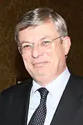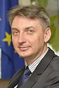 Kyprianou was followed by Franco Frattini on 23 April 2008 following elections in Italy when he was recalled to serve as foreign minister of Italy. Frattini's responsibilities were handed to Barrot (who held them in addition to his existing transport duties) until a replacement for Frattini could be found.[28] In light of Parliament's opposition in 2004 when Buttiglione was deemed inappropriate for the justice portfolio, when Antonio Tajani MEP (another right wing candidate) was put forward to replace Frattini, president Barroso handed him Barrot's transport portfolio, leaving Barrot to continue with the justice portfolio for continuity and to ensure Parliament would back Tajani in such as non-sensitive position as Transport (but one still of interest to Italy due to problems with Alitalia).[29] Parliament approved Tajani on 18 June 2008 with a vote of 507 to 53 (64 abstentions).[30] Peter Mandelson then left in October 2008 to return to national politics as Secretary of State for Business, Enterprise and Regulatory Reform, being replaced by Baroness Ashton.[31] Following the 2009 election two commissioners stood down to accept seats in the European Parliament: Danuta Hübner (Poland) and Louis Michel (Belgium) who were replaced by Paweł Samecki (4 July) and Karel De Gucht (17 July) respectively. Dalia Grybauskaitė (Lithuania) was replaced by Algirdas Šemeta on 1 July 2009) after becoming President of Lithuania.[32] Ján Figeľ (Slovakia) was replaced by Maroš Šefčovič on 1 October 2009 after being elected leader of the Christian Democratic Movement on 21 September 2009.