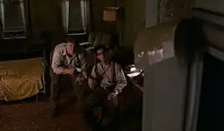 The Coens edited the film themselves, as is their custom. "We prefer a hands-on approach," Joel explained in 1996, "rather than sitting next to someone and telling them what to cut."[21] Because of rules for membership in film production guilds, they are required to use a pseudonym; "Roderick Jaynes" is credited with editing Barton Fink.[22] Only a few filmed scenes were removed from the final cut, including a transition scene to show Barton's movement from New York to Hollywood. (In the film, this is shown enigmatically with a wave crashing against a rock.) Several scenes representing work in Hollywood studios were also filmed, but edited out because they were "too conventional".[23]
