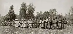 During World War II, Bashkir soldiers served in the Red Army to defend the Soviet Union and fought against the Germans during the German invasion of the Soviet Union.[30]
