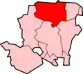 Basingstoke has no single boundary that encompasses all the areas contiguous to its development. The unparished area of the town represents its bulk, but several areas popularly considered part of the town are separate parishes, namely Chineham, Rooksdown, and parts of Old Basing and Lychpit.[34] The unparished area includes Worting, which was previously a separate village and parish,[35] extending beyond Roman Road and Old Kempshott Lane, which might otherwise be considered the town's 'natural' western extremity.