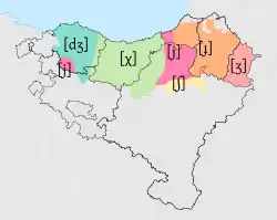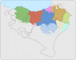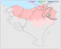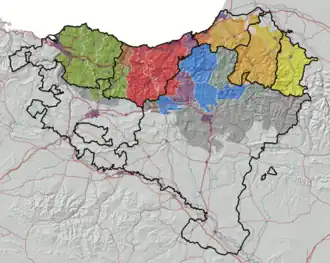 ![]() Dialect areas of Basque. Light-coloured dialects are extinct. See § Dialects | ||||