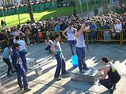 There are several sports derived by Basques from everyday chores. Heavy workers were challenged and bets placed upon them. Examples are: