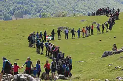 Nowadays, according to one single opinion poll, only slightly more than 50% of Basques profess some kind of belief in God, while the rest are either agnostic or atheist. The number of religious skeptics increases noticeably for the younger generations, while the older ones are more religious.[39] Catholicism is, by far, the largest religion in the Basque Country. In 2019, the proportion of Basques that identify themselves as Roman Catholic was 60%,[40] while it is one of the most secularized communities of Spain: 24.6% were non-religious and 12.3% of Basques were atheist.