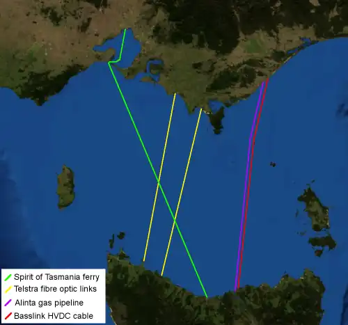 The Basslink HVDC electrical cable has been in service since 2006. It has the capacity to carry up to 630 megawatts of electrical power across the strait.