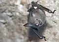 Bats are placental mammals. After rodents, they are the largest order, making up about 20% of known mammal species.[34][35] In 1758, Carl Linnaeus classified the seven bat species he knew of in the genus Vespertilio in the order Primates. Around twenty years later, the German naturalist Johann Friedrich Blumenbach gave them their own order, Chiroptera.[36] Since then, the number of described species has risen to over 1,500,[37] traditionally classified as two suborders: Megachiroptera (megabats) and Microchiroptera (microbats/echolocating bats).[38] Not all megabats are larger than microbats.[39] Several characteristics distinguish the two groups. Microbats use echolocation for navigation and finding prey, but megabats, apart from those in the genus Rousettus, do not.[40] Accordingly, megabats have well-developed eyesight.[38] Megabats have a claw on the second finger of the forelimb, external ears close to form a ring, and lack a tail.[41][38] They only feed on plant material like fruit and nectar.[38]