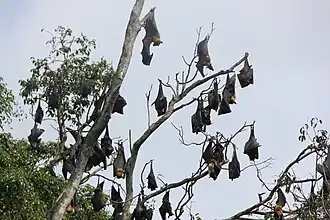 188. ^ Halpin, K.; Young, P. L.; Field, H. E.; Mackenzie, J. S. (2000). "Isolation of Hendra virus from pteropid bats: a natural reservoir of Hendra virus". Journal of General Virology. 81 (8): 1927–1932. Bibcode:2000JGVir..81.1927H. doi:10.1099/0022-1317-81-8-1927. PMID 10900029. In this paper we describe the isolation of HeV from pteropid bats, corroborating our serological and epidemiological evidence that these animals are a natural reservoir host of this virus.