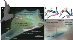 209. ^ Håkansson, J; Mikkelsen, C; Jakobsen, L; Elemans, C. P. H. (2022). "Bats expand their vocal range by recruiting different laryngeal structures for echolocation and social communication". PLOS Biology. 20 (10) e3001881. doi:10.1371/journal.pbio.3001881. PMC 9707786. PMID 36445872.