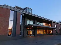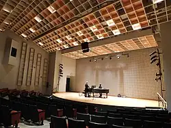 The Olin Arts Center maintains three teaching sound proof studios, five class rooms, five seminar rooms, ten practice rooms with pianos, and a 300-seat grand recital hall. It holds the college's Steinway concert grand piano, Disklavier, William Dowd harpsichord, and their 18th-century replica fortepiano. The studios are modernized with computers, synthesizers, and various recording equipment.[137] The center houses the departments of Art and Music, and was given to Bates by the F. W. Olin Foundation in 1986.[138] The center has had numerous artists-in-residence, such as Frank Glazer and Leyla McCalla.[139][140] The Olin Arts Center has joined with the Maine Music Society to produce musical performances throughout Maine.[141]
