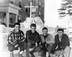In 1894, George Colby Chase led Bates to increased national recognition,[29] and the college graduated one of the founding members of the Boston Red Sox, Harry Lord.[30][31] In 1920, the Bates Outing Club was founded and is one of the oldest collegiate outing clubs in the country,[32] the first at a private college to include both men and women from inception, and one of the few outing clubs that remain entirely student run.[33] The debate society of Bates College, the Brooks Quimby Debate Council, became the first college debate team in the United States to compete internationally, and is the oldest collegiate coeducational debate team in the United States.[34] In February 1920, the debate team defeated Harvard College during the national debate tournament held at Lewiston City Hall. In 1921, the college's debate team participated in the first intercontinental collegiate debate in history against the Oxford Union's debate team at the University of Oxford.[35] Oxford's first debate in the United States was against Bates in Lewiston, in September 1923.[36] In addition during this time, numerous academic buildings were constructed throughout the 1920s. In 1943, the V-12 Navy College Training Program was introduced at Bates. Bates maintained a considerable female student body and "did not suffer [lack in student enrollment due to military service involvement] as much as male-only institutions such as Bowdoin and Dartmouth."[34] During the war, a victory ship was named the SS Bates Victory, after the college.[37] It was during this time future U.S. Attorney General Robert F. Kennedy enrolled along with hundreds of other sailor-students.[38][39] The rise of social inequality and elitism at Bates is most associated with the 1940s, with an increase in racial and socioeconomic homogeneity. The college began to garner a reputation for predominately educating white students who come from upper-middle-class to affluent backgrounds.[40] The New York Times detailed the atmosphere of the college in the 1960s with the following: "the prestigious Bates College—named for Benjamin E. Bates, whose riverfront mill on Canal Street in Lewiston was once Maine's largest employer—provided an antithesis: a leafy oasis of privilege. In the 1960s, it was really difficult for most Bates students to integrate in the community because most of the people spoke French and lived a hard life."[41]
