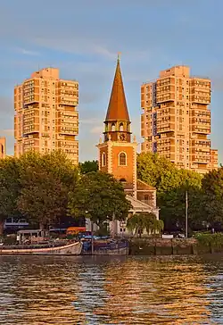 ![]() St Mary's Church and tower blocks in Battersea | |