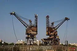 Coal was usually delivered to the jetty where two cranes, capable of unloading two ships at a time at a rate of 480 tonnes an hour, offloaded coal. Some coal was delivered by rail to the east of the station from the Brighton Main Line which passes nearby. A conveyor belt system moved the coal to a storage area or directly to the station's boiler rooms. The conveyor belt system consisted of a series of bridges connected by towers. The storage area was a large concrete box capable of holding 75,000 tonnes of coal. It had an overhead gantry and a conveyor belt attached to the conveyor belt system for moving coal to the boiler rooms.[4][5]