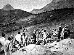 The armies were followed by a similar number of camp followers who supplied the army, as had been done for centuries.[17] Most of the army consisted of riflemen, a significant percentage of whom were in Menelik's reserve. There were also a significant number of cavalry and infantry only armed with lances, the latter referred to as "lancer servants".[17][18][19]