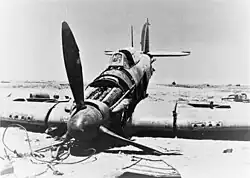 A Hurricane fighter brought down by Italian anti-aircraft fire during the battle.