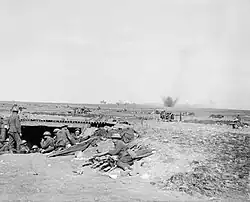 After the territorial gains of the first two days, a lull followed as British guns, ammunition and transport links were moved forward. Battalions of pioneers built temporary roads across the churned up battlefield; heavy artillery (and its ammunition) was manhandled into position in new gun pits; food for the men and feed for the draught horses was brought up and Casualty Clearing Stations were established in readiness for the inevitable counter-attacks. Allied commanders also faced a dilemma: whether to keep their exhausted divisions on the attack and run the risk of having insufficient manpower or replace them with fresh divisions and lose momentum.[55]