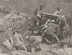 The principal danger to assaulting troops came from enemy artillery-fire as they crossed no man's land, accounting for over half the casualties at the first day of the Somme. A further complication was the location of German artillery, hidden behind the ridges. Specialist artillery units were created to attack German artillery. Their targets were provided by 1st Field Survey Company, Royal Engineers, who collated data obtained from flash spotting and sound ranging.[43] (Flash spotting required Royal Flying Corps observers to record the location of tell-tale flashes made by guns on firing.) On Zero-Day, 9 April, over 80 per cent of German heavy guns in the sector were neutralised ("unable to bring effective fire to bear, the crews being disabled or driven off") by counter-battery fire.[43] Gas shells were also used against the draught horses of the batteries and to disrupt ammunition supply columns.[44]