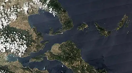 Historians suggest that the Allies may have misinterpreted the Persian movements and come to the mistaken conclusion that the Persians were sailing east around Skiathos, aiming to sail around the eastern side of Euboea. The signals sent by fire beacons must have been very simplistic, and potentially interpreted wrongly; alternatively, the signallers may have genuinely believed that the Persian fleet was sailing to the east of Skiathos. If the Persians sailed around the outer, eastern side of Euboea, they could head straight to Attica, and thereby cut off the Allied fleet's line of retreat.[18] Furthermore, the Persians had enough ships to attempt to both attack the Straits of Artemisium, and sail around Euboea.[13] The withdrawal to Chalcis therefore gave the Allies the opportunity to escape from the Straits of Euboea if the Persians did travel around the outside of Euboea, but also allowed them to return to Artemisium if necessary. In this context, the watchers left on Euboea could inform the Allies if the Persian fleet did indeed sail east of Euboea.[18] The Allied fleet thus continued to wait at Chalcis. Nevertheless, the Allies, undoubtedly anxious about facing a Persian fleet that so greatly outnumbered them, may have somewhat overreacted.[13]