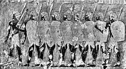 The Persian emperor Xerxes I decided that the Hellespont had to be bridged for his army to cross to Europe, and that a canal should be dug across the isthmus of Mount Athos.[2] By early 480 BC, the preparations were complete, and the army Xerxes had mustered at Sardis marched towards Europe, crossing the Hellespont on two pontoon bridges.[3]