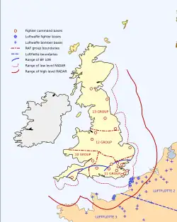 Both France and the UK declared war on Germany; on 9 October, Hitler's "Directive No. 6" planned the offensive to defeat these allies and "win as much territory as possible in the Netherlands, Belgium, and northern France to serve as a base for the successful prosecution of the air and sea war against England".[42] On 29 November, OKW "Directive No. 9 – Instructions For Warfare Against The Economy Of The Enemy" stated that once this coastline had been secured, the Luftwaffe together with the Kriegsmarine (German Navy) was to blockade UK ports with sea mines. They were to attack shipping and warships and make air attacks on shore installations and industrial production. This directive remained in force in the first phase of the Battle of Britain.[43][44] It was reinforced on 24 May during the Battle of France by "Directive No. 13", which authorised the Luftwaffe "to attack the English homeland in the fullest manner, as soon as sufficient forces are available. This attack will be opened by an annihilating reprisal for English attacks on the Ruhr Basin."[45]