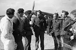 The Luftwaffe, on the other hand, were able to muster a large number (1,450) of experienced fighter pilots.[112] Drawing from a cadre of Spanish Civil War veterans, these pilots already had comprehensive courses in aerial gunnery and instructions in tactics suited for fighter-versus-fighter combat.[114] Training manuals discouraged heroism, stressing the importance of attacking only when the odds were in the pilot's favour. Despite the high levels of experience, German fighter formations did not provide a sufficient reserve of pilots to allow for losses and leave,[111] and the Luftwaffe was unable to produce enough pilots to prevent a decline in operational strength as the battle progressed.