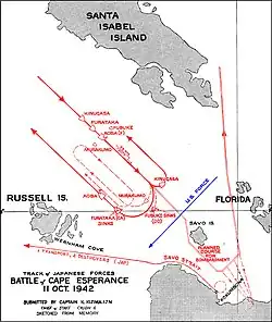 - ^ Cook, Cape Esperance, pp. 42–50, 53–56, 71, Frank, Guadalcanal, pp. 300–301, D'Albas, Death of a Navy, p. 184, Dull, Imperial Japanese Navy, pp. 227–228, and Morison, Struggle for Guadalcanal, pp. 156–157.
