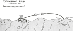 Meanwhile, native island scouts—directed by British government official and officer in the British Solomon Islands Protectorate Defence Force, Martin Clemens—told the Marines of Japanese troops at Taivu, near the village of Tasimboko, about 17 mi (27 km) east of Lunga. Edson launched a raid against the Japanese troops at Taivu.[26] Destroyer transports USS McKean and Manley and two patrol boats took 813 of Edson's men to Taivu in two trips.[27]