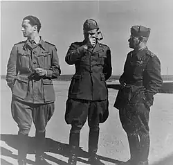 On the far right of the Axis advance, the 90th Light Afrika Division engaged the 7th Motorised Brigade at Retma and forced it to withdraw eastwards on Bir el Gubi.[34] Resuming their advance toward El Adem before noon, armoured cars of the 90th Light came upon the advanced HQ of 7th Armoured Division near Bir Beuid, dispersing it and capturing a number of officers, including the commander, Frank Messervy, who pretended to be a batman and escaped.[35] The "inexcusable" lapse in security left the division without effective command for the next two days. As planned, the 90th Light Division reached the El Adem area by mid-morning and captured a number of supply dumps. The following day, the 4th Armoured Brigade was sent to El Adem and the 90th Light Division was driven back to the south-west.[36]