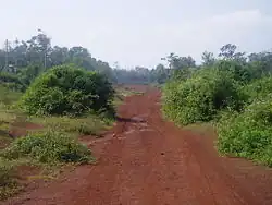 The village of Khe Sanh was the seat of government of Hương Hoa district, an area of Bru Montagnard villages and coffee plantations about 7 miles (11 km) from the Laotian frontier on Route 9, the northernmost transverse road in South Vietnam. The badly-deteriorated Route 9 ran from the coastal region through the western highlands and crossed the border into Laos. The origin of the combat base lay in the construction by US Army Special Forces of an airfield in August 1962 outside the village at an old French fort.[18]: 59 The camp then became a Special Forces outpost of the Civilian Irregular Defense Groups, which were to keep watch on PAVN infiltration along the border and to protect the local population.[23][Note 2]