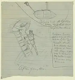 An anecdote of the battle that has some dramatic interest has it that Farragut was lashed to the mast during the passage of Fort Morgan. This event came about after the battle had opened and smoke from the guns had clouded the air. In order to get a better view of the action, Farragut climbed into Hartford's rigging and soon was high enough that a fall would certainly incapacitate him and could have killed him. Seeing this, Captain Drayton sent a seaman aloft with a piece of line to secure the admiral. He demurred, saying, "Never mind, I am all right," but the sailor obeyed his captain's orders, tying one end of the line to a forward shroud, then around the admiral and to the after shroud.[51]
