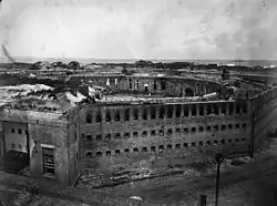In the judgment of an engineering officer who inspected the fort after the Union army had taken possession, "It was utterly weak and inefficient against our attack (land and naval), which would have taken all its fronts in front, enfilade, and reverse."[47] Recognizing that his situation was hopeless, Anderson opened communication with Granger and Farragut under a flag of truce; ignoring orders from Page forbidding him to do so (and eventually removing him from command), he surrendered the fort on August 8.[48]