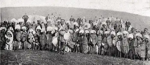 - ^ Archer, Christon I. World History of Warfare University of Nebraska Press, 2002, ISBN 0-8032-1941-5, p. 462 "They had a national army of twenty-five thousand men equipped with cowhide shields, assegais and clubs." Lock and Quantrill 2005, p. 62: John Shepstone, Acting Secretary for Native Affairs at the time, on the Zulu army – "Equipment: Each man carries his shield and assegais, and a kaross or blanket if he possesses one, he may also have a war dress of monkey skins or ox tails, this is all."
