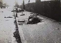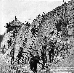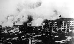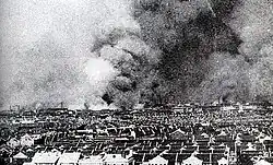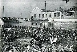 It was the first of the twenty-two major engagements fought between the National Revolutionary Army (NRA) of the Republic of China (ROC) and the Imperial Japanese Army (IJA) of the Empire of Japan at the beginning of the Second Sino-Japanese War. The Japanese eventually prevailed after over three months of extensive fighting on land, in the air and at sea. Both sides accused each other of using chemical weapons during the battle, with Japanese forces confirmed to have deployed poison gas at least thirteen times.[21][22] Historian Peter Harmsen stated that the battle "presaged urban combat as it was to be waged not just during the Second World War, but throughout the remainder of the twentieth century" and that it "signalled the totality of modern urban warfare".[23] It was the single largest urban battle prior to the Battle of Stalingrad, which occurred almost 5 years later.[24]