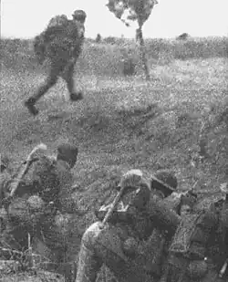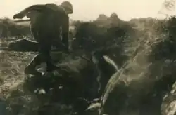 The 44th infantry regiment of the Japanese 11th division had been in a stand-off with the 1st battalion of the 65th regiment of the Chinese 11th division at the "white house" since Luodian was occupied. On September 19, engineers dug a tunnel towards the "white house". On September 23, the 44th infantry regiment utilized the tunnel to plant explosives on the walls and stormed the fortification through the gaps in the walls. The defenders were forced to retreat after suffering more than 50% casualties and the position was occupied.[77] Despite the loss of the "white house", Lin Yindong (林映東), the commander of the 1st battalion, was awarded the A-2 grade for the "Medal of the Armed Forces" and promoted to lieutenant colonel and regimental attaché of the 66th regiment for holding onto the "white house" for nearly a month against a numerically-superior foe.[78]