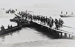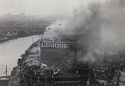 Despite the heavy resistance and at the cost of heavy casualties, the Chinese were able to push the Japanese back. At the same time, the 87th Division had broken through Japanese lines at Yangshupu, and pushed the Japanese back to the Hueishan docks along with the 36th Division.[47] By August 21, 1937, Chinese tanks had managed to punch through to Broadway, the last street before the Huangpu.[52]