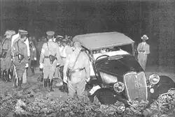 On August 9, Naval Sub-Lieutenant Isao Ōyama (大山勇夫), head of the Western Detachment of the Japanese Special Naval Landing Forces stationed in Shanghai and his driver, First-Class Seaman Saito Yozo, along with a guard from the Chinese Peace Preservation Corps were found dead around the gate to Hongqiao Airport on Monument Road. Several accounts allege Ōyama and his driver were stopped by the Peace Preservation Corps Guard before Ōyama opened fire and killed them. The Sub-Lieutenant and his driver were then subsequently killed in returning fire from other guards at airport.[40]