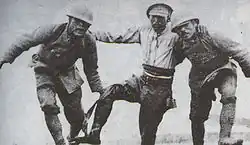American correspondent Edgar Snow described the scenes of the battle while observing from the international zone, "It was as though Verdun had happened on the Seine, in full view of a Right Bank Paris that was neutral; as though a Gettysburg were fought in Harlem, while the rest of Manhattan remained a non-belligerent observer."[54] An eyewitness at the battle stated that it was "no longer a war between armies, but between races. With mounting fury the two giants, like two men who have started a boxing match and who suddenly find themselves convulsed with hate, sprang at each other's throat in a tussle in which the only prize was death."[55]