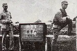 As a result, the Chinese suffered heavy losses in the first attack, with over a thousand casualties including brigade commander Huang Meixing who was killed when an artillery shell destroyed his position near the Bazi Bridge. By nightfall, Chiang ordered Zhang Zhizhong to pause the assault.[42] The Japanese SNLF had suffered roughly a hundred casualties including twenty-seven dead.[44]