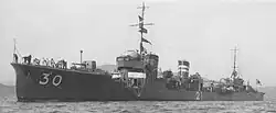 The Japanese invasion fleet for the 11 December assault included the light cruisers Yūbari, Tenryū, and Tatsuta; the older Mutsuki and Kamikaze-class destroyers Yayoi, Mutsuki, Kisaragi, Hayate, Mochizuki and Oite, submarine tender Jingei, two armed merchantmen (Kinryu Maru and Kongō Maru), and two Momi-class destroyers converted to patrol boats that were reconfigured in 1941 to launch a landing craft over a stern ramp (Patrol Boat No. 32 and Patrol Boat No. 33) containing 450 Special Naval Landing Force troops. Submarines Ro-65, Ro-66, and Ro-67 patrolled nearby to secure the perimeter.